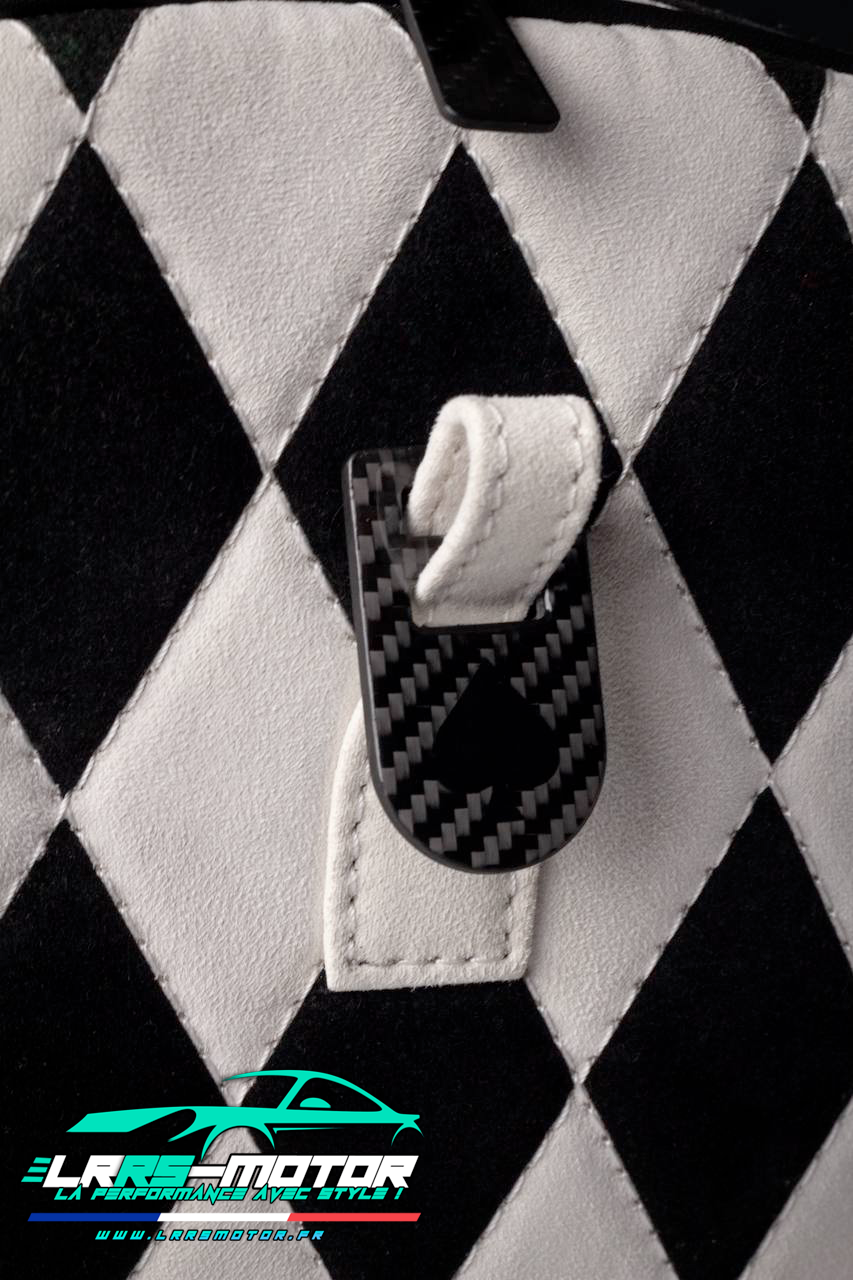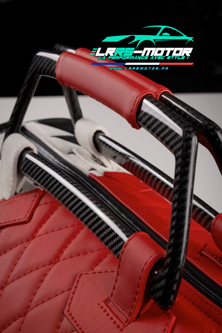 Après confirmation de votre personnalisation, nous vous proposerons un visuel avec les matières que vous avez choisies. Il pourra s’agir d’une inspiration de votre véhicule ou d’un autre projet. Nous concevons de A à Z votre sac totalement personnalisable.